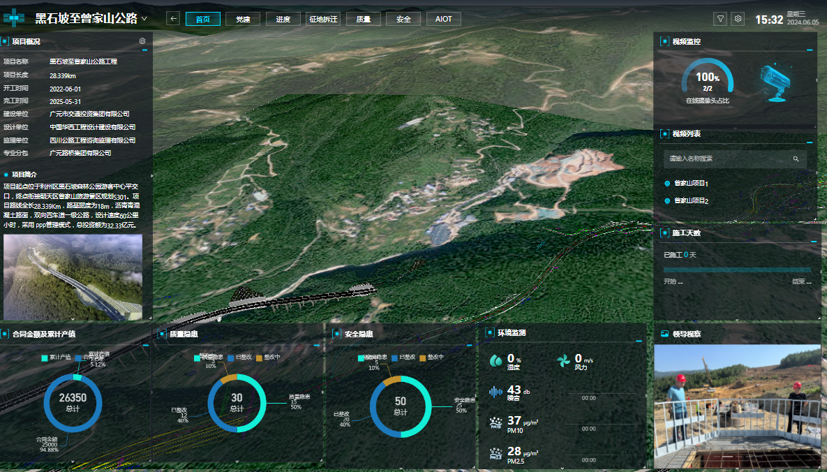 為強化風險管控,黑曾路項目部引入智慧信息化可視管理平臺,綜合運用BIM、GIS、物聯(lián)網(wǎng)、大數(shù)據(jù)、人工智能、無人機等先進技術(shù),構(gòu)建基于BIM+GIS+IOT+AI+PM的智慧工地平臺,實現(xiàn)進度、質(zhì)量、安全等全方位智能化管控。