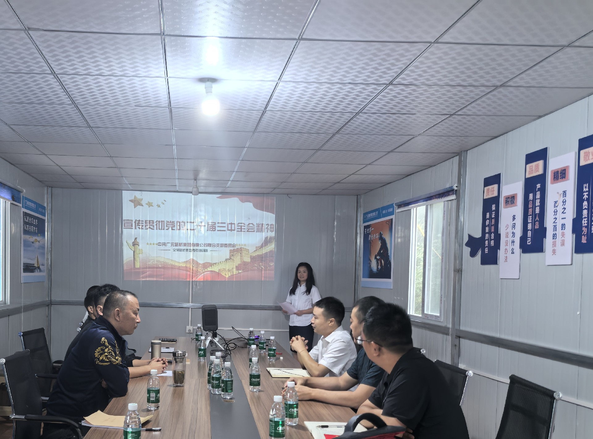 活動(dòng)當(dāng)天,青年宣講人伍佳文同志先后來(lái)到劍閣縣下寺至利州區(qū)月壩公路(三個(gè)石至硝洞埡段)項(xiàng)目部與黑石坡至曾家山公路工程項(xiàng)目,帶領(lǐng)駐扎在施工一線的干部職工們體會(huì)和領(lǐng)悟黨的二十屆三中全會(huì)精神,著重講述說(shuō)明了進(jìn)一步全面深化改革、推進(jìn)中國(guó)式現(xiàn)代化的必要性和重要性,并將優(yōu)秀共產(chǎn)黨員李文超同志作為典型模范,鼓舞大家向他看齊,用實(shí)際行動(dòng)彰顯路橋人的責(zé)任與擔(dān)當(dāng)。