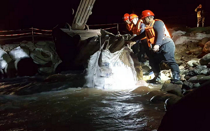 2019年10月25日晚上8點,旺蒼縣東河上游持續(xù)降雨,導(dǎo)致河道水位急速上漲,洪水眼看就要沖垮圍堰淹沒現(xiàn)場施工設(shè)備及物資材料了,項目部值守人員及時發(fā)現(xiàn)了險情,立即上報項目負(fù)責(zé)人。應(yīng)對突如其來的災(zāi)情,項目負(fù)責(zé)人杜光安迅速召集項目部所有人員冒雨集合,經(jīng)過簡短的分析、研究和商定,一場抗洪搶險攻堅戰(zhàn)迅速打響。機駕人員劉文勇、周勇率先駕駛著機械疏通河道,憑借著熟練的操作技能和對環(huán)境的正確判斷迅速地疏通河道,增加過水面積;其他施工人員冒著大雨,借助車輛微弱的燈光摸黑轉(zhuǎn)移現(xiàn)場物資材料,泥巴了裹滿褲腿,雨水濕透了衣背,但他們精神抖擻,干勁沖天。在險情面前,黨員劉強、預(yù)備黨員劉文勇充分發(fā)揮了黨員干部的先鋒模范作用,沒有畏懼、沒有退縮,義無反顧地沖在搶險第一線。當(dāng)險情控制住后,他們不顧疲勞辛苦,主動要求留下來徹夜觀察水位,密切監(jiān)視雨情和汛情變化。次日凌晨5:30分河道水位再次上漲,因為他們徹夜堅守及時發(fā)現(xiàn),險情得以迅速排除,最大限度地減少了公司的經(jīng)濟(jì)損失。